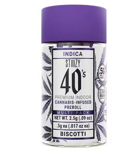 Elevate your pre-roll game. Stiiizy 40s pre-rolls are setting the standard with high potency, cannabis infused joints coated evenly with kief. Using our proprietary live resin infusion methods, we’ve designed every pre-roll to offer 40%+ THC potency with a unique flavor profile. With a smooth inhale and tasteful exhale, each and every Stiiizy 40 is packed with indoor grown flower, specifically made to ensure a potent and long-lasting high. Spark up the 40s.